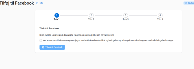 Note: Du kan ikke bruge denne funktion til at udgive et event på din personlige Facebook profil eller på en Facebook gruppe.