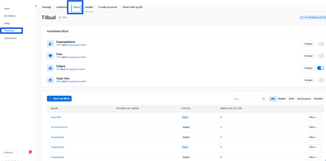 Tilbud – Opret og administrer særlige kampagner og rabatter.