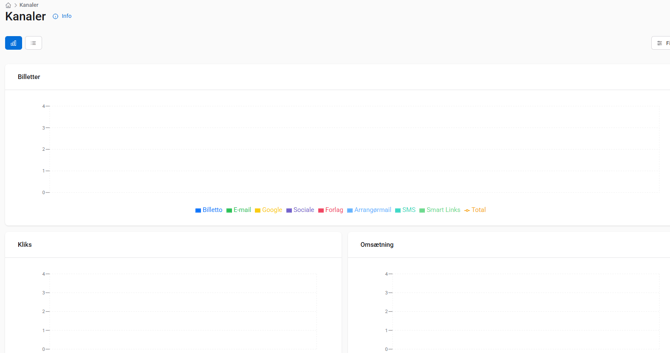 Viser billetter, omsætning og klik på tværs af alle dine events.