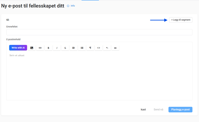 Når du har valgt segment og fylt ut e-posten, kan du velge følgende: