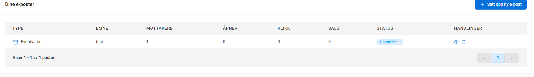 For hver e-post som sendes, gir Billetto deg detaljert innsikt i ytelsen. Du kan se parametere som leveringsrate, klikkrate, åpningsrate og salg generert fra hver e-post. Denne innsikten er verdifull for å forstå publikums engasjement og optimalisere e-postmarkedsføringsstrategien din.